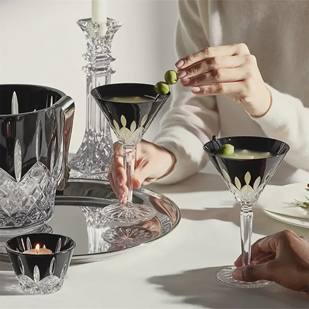 Best-selling Lismore pattern takes a dramatic turn with the Lismore Black collection. Rich opaque black color adds a striking contrast to the sparkling clear crystal, emphasizing the deep cuts of the beloved Lismore pattern.